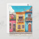 Um cartão-postal ilustrado, encantador e vibrante, que mostra as charmosas ruas de Bodrum, na Turquia. A cena apresenta casas mediterrânicas lindamente texturizadas pintadas em tons brilhantes de amarelo, azul e vermelho, adornada com balcões de madeira rústicos, janelas decorativas e avisos confortáveis. O caminho de pedra enrolada e as luzes de fadas somam-se à atmosfera pitoresca, enquanto as borboletas que fluem e o verde-luxuoso completam o ambiente quente e convidativo.