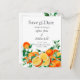 Nosso Blossom Laranja Boho Salve a Data é uma forma na moda para comemorar e compartilhar seu evento alegre. Este design impressionante apresenta uma série de flores de laranja e laranjas lindas adiciona o toque perfeito para qualquer casamento, chá ou evento temático de jardim.