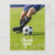Cartão Postal Bola de futebol com palavra Obrigado com grama ver