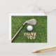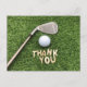 Cartão Postal Bola de golfe com palavra agradecimento na grama v