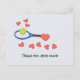 Bola de tênis com raquete azul Obrigado com amor Cartão postal