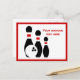 Pinos bolas de boliche e pretos com um ícone minimalista de três pinos de boliche preta com faixas vermelhas, uma bola e seu texto sobre fundo branco com borda vermelha.