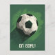 Este é um cartão-postal com tema de futebol onde uma ilustração de uma bola de futebol clássica colocada no meio contra um fundo verde com o texto padrão personalizável "on gogol!". É um design excelente para fãs de futebol e jogadores de futebol.