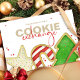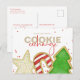 Esta design apresenta uma festa de troca de biscoitos de Natal, biscoitos de festa de troca, um cartão-postal de orçamento, festa de inverno tradicional, com fofos e tipografia moderna, biscoitos de açúcar trocam baleias festivas, canas de decoração divertida, glacé de decoração de árvores de Natal salpicadas por estrelas, e cor de água pintada à mão, fazer de cozinhar de cozinha, trabalho de arte por laura lacina