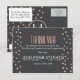 Bolinhas de ouro rosa e carvão preto elegantes, quentes e modernos imprimidos, bem como fundo preto de carvão, Obrigado Cartões-postais. Este design clássico e sofisticado é perfeito para qualquer evento de na moda e tendências, incluindo casamentos e ocasiões cotidianas. Toda impressão de fotos.
