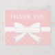 Cartões de agradecimentos de festa de aniversário de menina, bonito, com bolinhas rosa e branca e um arco branco bonito. Este cartão é completamente personalizável, por isso coloque o texto nos espaços fornecidos. Para obter um controle mais criativo, use o botão "Personalizar" para alterar a fonte, o tamanho da fonte ou a cor. Este cartão corresponde à nossa Coleção de Festas de aniversário de Filhos de Bolinhas Cor-de-Rosa e Branco.