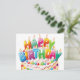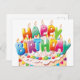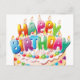 Cartão postal de bolo de aniversário fofo e colorido com velas. Envie isto para alguém para desejar um feliz aniversário e alegrar o dia deles.