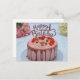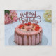 Cartão Postal Bolo de aniversário fresco pano de mesa branco flo
