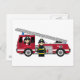 Cartão Postal Bombeiro e Motor de Fogo de Cartoon Bonito