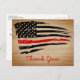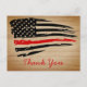 Cartões de agradecimentos fino da linha vermelha - bandeira americana em cores de bandeira de bombeiro, design angustiado. Este obrigado de bombeiro que você é perfeito para obrigado de bombeiro, ou departamentos de bombeiros. COPYRIGHT © 2020 Judy Burrows, Black Dog Art - Todos Os Direitos Reservados. Rustic Thin Red Firefighter Obrigado Cartão-postal