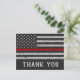 Cartões de agradecimentos de bombeiro fino da linha vermelha - bandeira americana nas cores do Fireman Flag, design angustiado. Este obrigado de bombeiro que você é perfeito para obrigado de bombeiro, ou departamentos de bombeiros. Personalize o dentro para o seu bombeiro ou departamento de bombeiros favoritos. COPYRIGHT © 2020 Judy Burrows, Black Dog Art - Todos Os Direitos Reservados. Bombeiro Thin Red Line Obrigado Cartão-postal