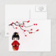 Cartão Postal Boneca Kokeshi sob o ramo sakura