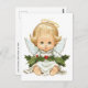 Um anjo louro e cabeludo segurando um pouco de natal.