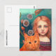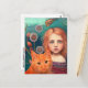 CARTÃO POSTAL bonito DE MENINA E GINGER CAT