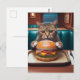 Cartão Postal Bonito gato num jantar com cheeseburger