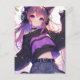 Convites de festas de aniversários da garota personalizada. Menina de anime bonita vestindo fones de ouvido com orelhas de gato e um suéter roxo e preto. Festa de aniversário bonita para garotas de jogos ou amantes de música ou aqueles que amam o tema da pelagem.