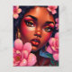 Cartão Postal Bonito Mulher de Cor com Flores no Cabelo