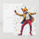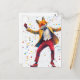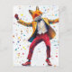 Uma raposa engraçada em uma roupa humana com um fundo colorido de bolinhas