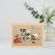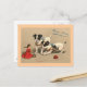 Cartão de Ano Novo francês vintage fofo mostrando dois cachorrinhos brincando com uma boneca e uma bola de lã. A mensagem do cartão é "Bonne Annee".