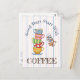 Um design tocável que começa com um fundo de listras pastel cor-de-rosa, azuis e amarelas. A principal característica é esta pilha colorida de xícaras de café, a de cima, dando pontas. No texto lê-se "Boas Jornadas Comecem Com CAFÉ". Na parte de trás do cartão-postal há uma versão menor da xícara de café ao lado do endereço de retorno. Também há linhas definidas atrás para um endereço. Este cartão postal pode ser personalizado.