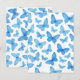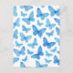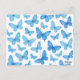 Motif de borboleta azul com asas arejadas e espalhadas sobre o pano de fundo escuro; padrão vibrante e inspirado na natureza ideal para primavera