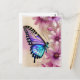 Cartão Postal Borboleta Azul Estonteante e Flores Rosa