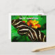 "Olá, Sunshine." Uma foto de perto de uma delicada borboleta listrada, preta e branca em uma flor laranja e amarela. Sinta o sol de um dia quente e ensolarado sempre que você envia este cartão-postal colorido e atordoante. Faz um presente de excelente para alguém especial!