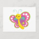 Cartão Postal Borboleta de Cartoon Gelada, rosa, amarela, verde