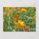 Cartão Postal Borboleta Fritillle indiana e flores cosmos