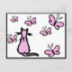 Um gato cor-de-rosa é cativado pelo ronco de borboletas cor-de-rosa a girar. Bonito ronda.