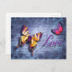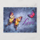 Borboletas e texto de amor sobre fundo texturizado azul.