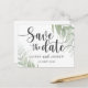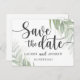 Simples e elegante guarde o cartão postal. Com caligrafia minimalista, escrita à mão e folhagem tropical em verde. Fácil de personalizar com suas informações exclusivas.