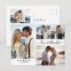 Casamento De Colagem Fotográfica Elegante, Mínimalista, Escrito À Mão 4, Obrigado Cartaz. modelo de cartões de agradecimentos de casamento com quatro fotos na frente e uma foto na parte traseira. Com o texto "Amor e obrigados" numa letra de tipografia ou de escrita caligráfica escrita à mão roxa, com inchaço ou a preto sobre fundo branco. Um pouco de amor entre os nomes. Adicione seu nome personalizado e sua mensagem de obrigado. Se preferir escrever manualmente a sua nota, basta eliminar o texto de amostra para obter mais espaço. Se você precisar de ajuda ou item correspondente, entre em contato comigo! Barato e barato.
