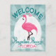 Boynton Beach Flórida flamingo rosa. No estilo de pôsteres de viagem vintage, diz "Bem-vindo a Boynton Beach, Flórida" em rosa, branco e verde turquesa menta.