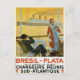 Vintage poster para a linha marítima francesa Chargeurs Reunis South Atlantic para os portos do Brasil e do Rio de La Plata.