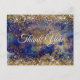 Cartão Postal Brilho Dourado Falso com Mármore Índigo Agradecime