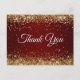Cartão Postal Brilho Dourado Falso Glitter Burgundy Obrigado