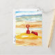 Balde e pá de areia estão prontos para a construção do castelo de areia na praia com suas cores vermelhas brilhantes na areia. Ótima pintura de praia e perfeita para enviar um rápido cartão postal nas férias de praia ou para deixar alguém saber que você estará fora enquanto estiver de férias na praia. CricketDiane Artista / Designer 2016 e Cricket House Studios Arte e Design. - Brinquedos de Areia - Construção de Castelo de Areia na Praia, pinturas de praia, pinturas do oceano, cartões postais de casa de praia, cartões postais do oceano, cartões postais de castelo de areia, cartões postais de praia, cartões postais fofos