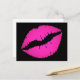 Crie seu próprio obrigado, seu cartão postal com um beijo com batom rosa brilhante. Batom rosa quente num impressão de beijo contra um fundo preto. Personalize a cor de fundo. Adicione sua própria mensagem de texto personalizada.