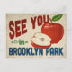 Um cartão postal encantador do Brooklyn Park Minnesota com uma adorável maçã vermelha, juntamente com um texto divertido no estilo retrô que diz, "Vejo você no Brooklyn Park"