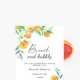 Chá de panela temático dos citros de aquarela com ilustração aquosa das laranjas em um galho de árvore. Manuscrito caligráfico elegante, perfeito para primavera, verão ou casamentos de outono. Itens correspondentes disponíveis.