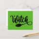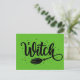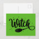 Este design em preto e branco apresenta a palavra "Witch" em uma fonte cursiva em negrito e fluida, com a extremidade da letra "h" se transformando no cabo de um cabo de vassoura. O texto é estilizado com uma aparência lúdica e manuscrita, adicionando um toque caprichoso ao tema geral. Ao redor da palavra estão estrelas espalhadas, criando um efeito mágico de noite estrelada que realça o tema de bruxaria. A vassoura, posicionada diagonalmente abaixo do texto, adiciona um elemento dinâmico ao design, sugerindo movimento e adicionando profundidade.
