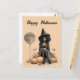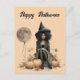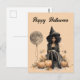 Cartão Postal Bruxa bonito do Halloween e Balão de Lua Cheia