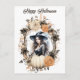 Cartão Postal Bruxa bonito no Halloween Wreath