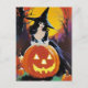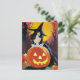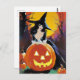 Cartão Postal Bruxa com abóbora em frente à lua de cheio