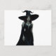 Este trabalho de arte digital cativante retrata uma bruxa poderosa num vestido preto elegante com olhos vermelhos brilhantes e um chapéu elegante de bruxa.