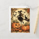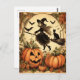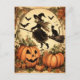 Cartão Postal Bruxa de Halloween com vassoura e gato