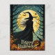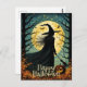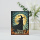 Cartão Postal Bruxa de Halloween da Floresta Noturna Cheia Lua