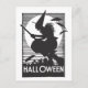Cartão Postal Bruxa de Halloween de Woodcut