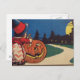 Cartão Postal Bruxa Jack O Lanterna Lua Cheia Esculpindo Pumpkin